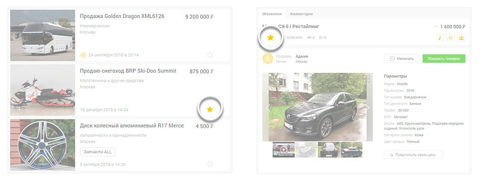 На страницах списка объявлений или объявления нажмите на звездочку